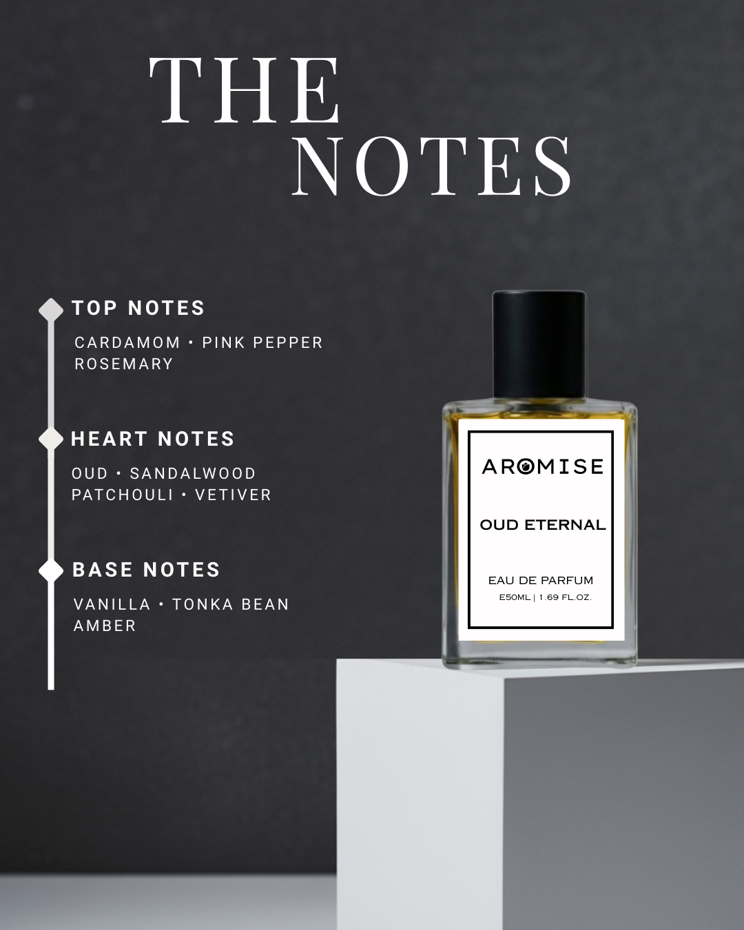 Mysterious, magnetic, and exquisitely balanced — Oud Eternel pays homage to the legendary aura of Tom Ford Oud Wood, reinterpreted through the refined craftsmanship of Aromise.